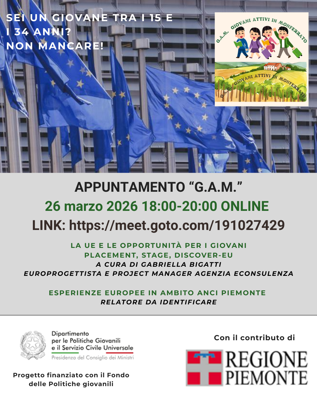 Appuntamento "G.A.M.": 26 marzo 2026 18:00 - 20:00 ONLINE